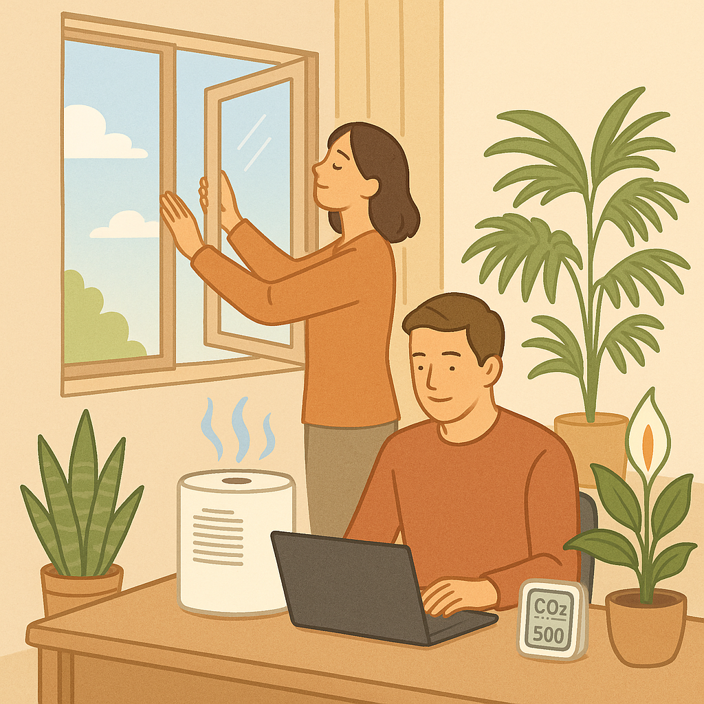 - 하루 2~3회, 최소 10분 이상 창문 열기