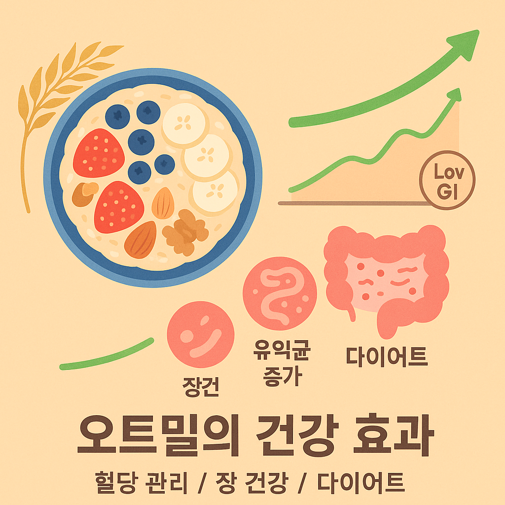 곡물 중 오트밀은 혈당지수(GI)가 낮아 섭취 후 혈당이 천천히 오르는 특징이 있습니다. 이는 베타글루칸이 위에서 젤처럼 변해 당분 흡수를 느리게 하여, 혈당 스파이크를 막아주기 때문입니다. 혈당관리가 필요한 당뇨, 인슐린 저항성이 걱정되는 분들은 아래 원칙을 참고해 보세요.