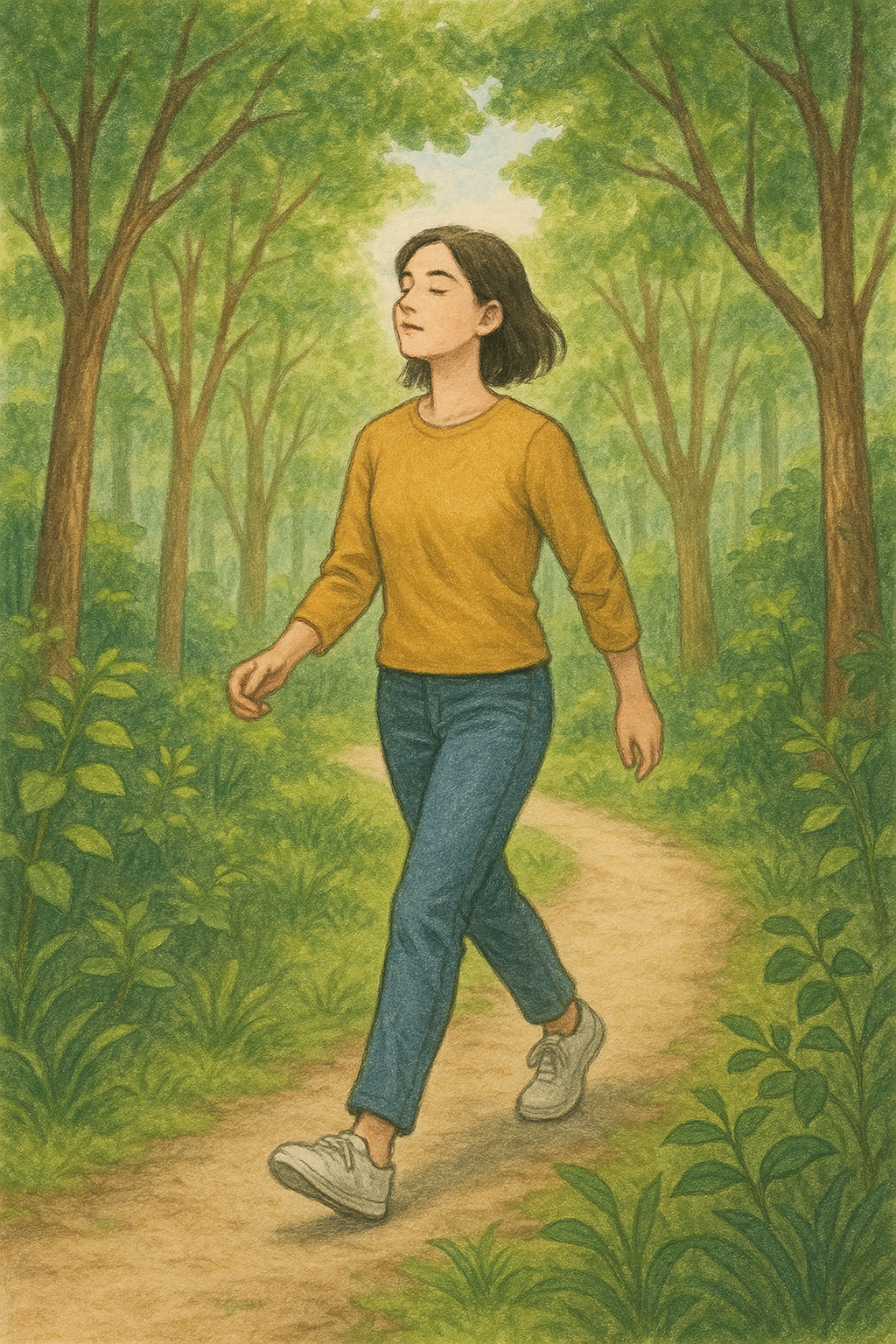 - 5~20분: 조용한 길 따라 천천히 걷기 (몸의 감각에 집중)