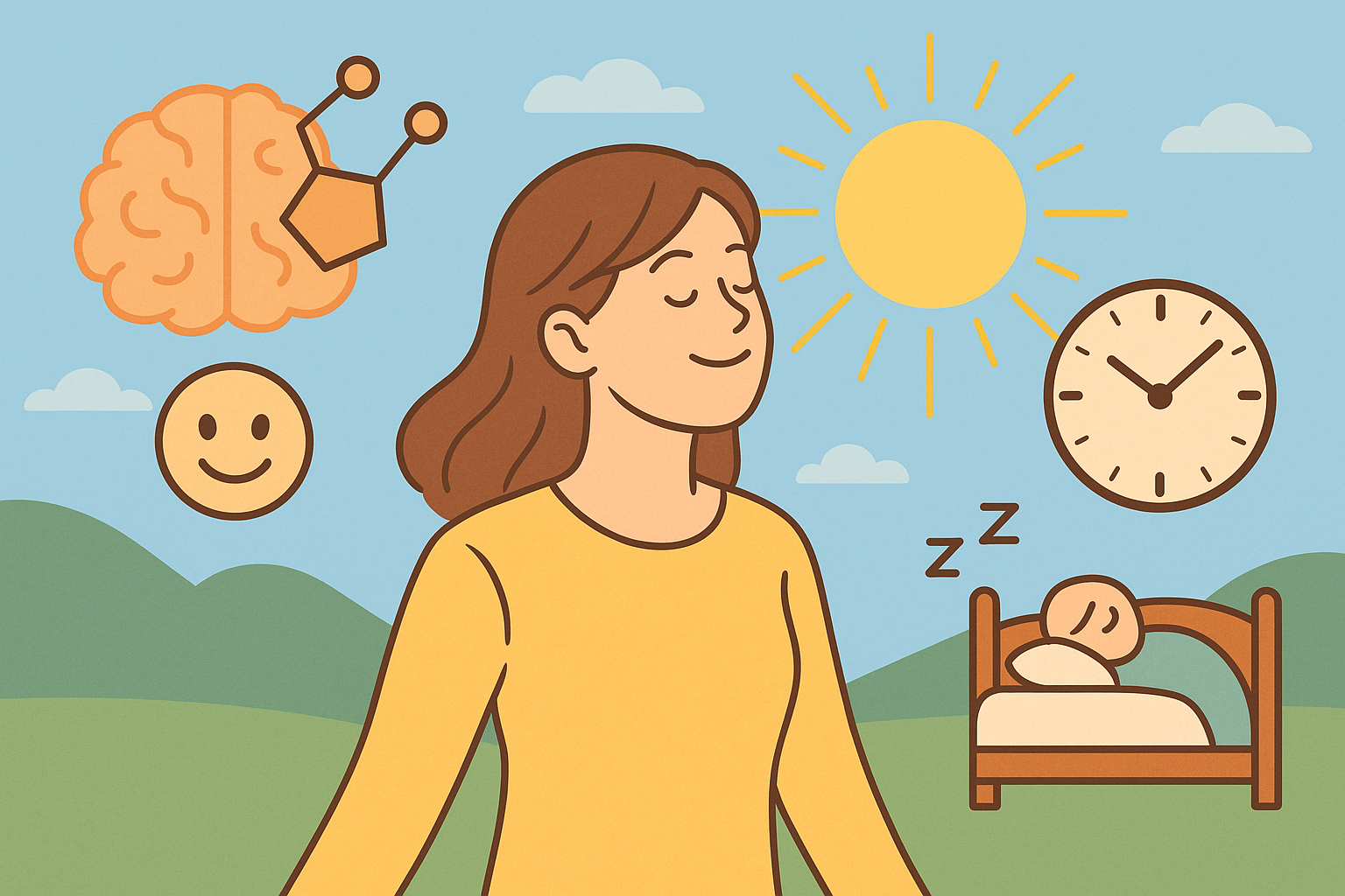 또한 식이 조절과 규칙적인 수면 습관, 자연의 리듬에 맞춘 활동 루틴도 세로토닌 및 멜라토닌 분비에 도움이 됩니다.